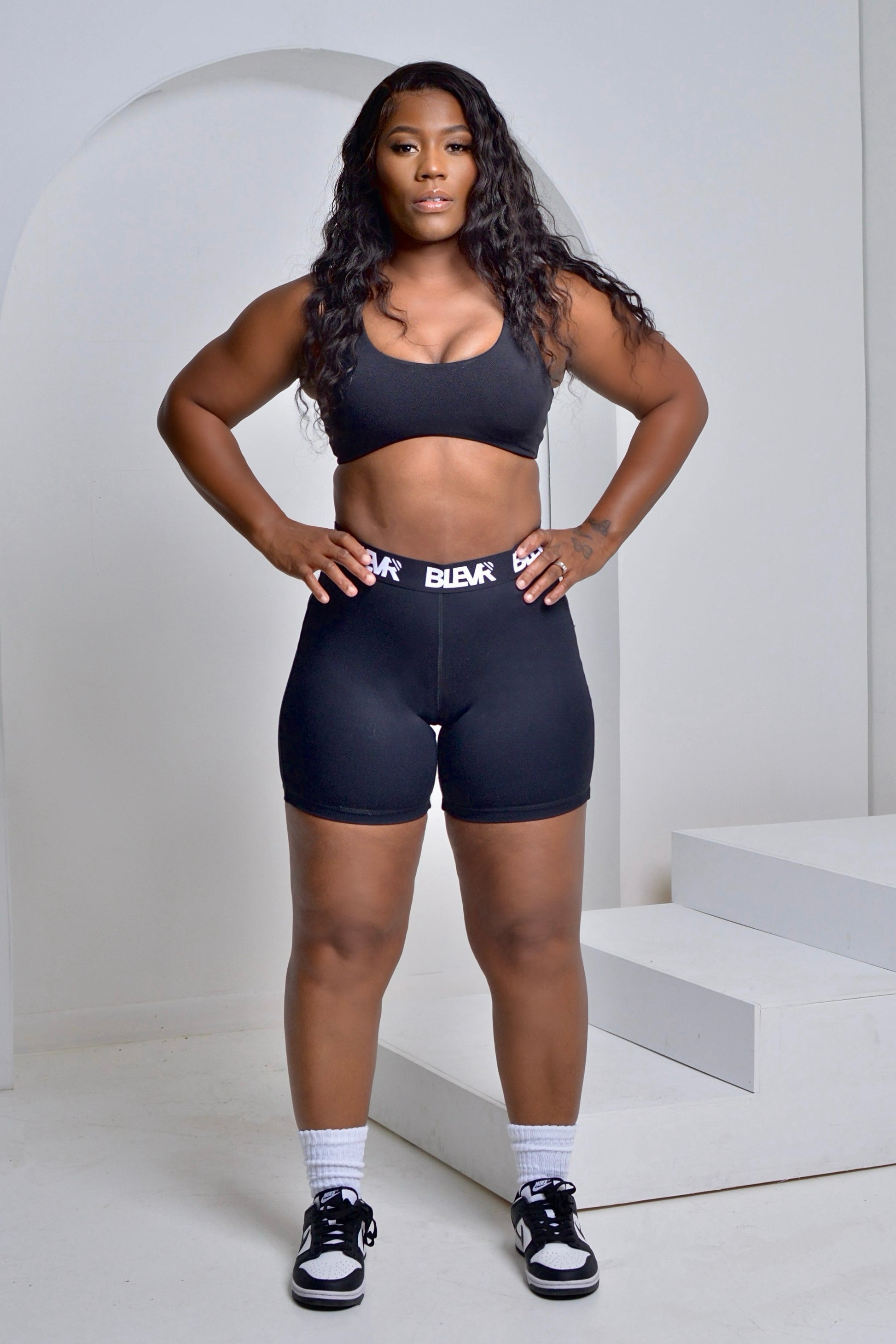 BLEVR 6 INCH BIKER SHORTS WITH LOGO ELASTIC BAND. PERFECT FOR BOTH ACTIVE & ATHLEISURE WEAR